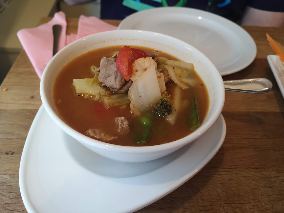 At Chamthai Soul Kitchen, the menu is a celebration of Thailand's best-loved dishes, with something for everyone, from fiery curries to comforting soups. If you're a fan of spice, you’ll find their Green Curry and Pad Ped Prig Thai-Aon irresistible, with bold flavors and a perfect balance of heat. For those seeking a milder option, the Massaman Curry offers a deliciously rich, slightly sweet alternative.